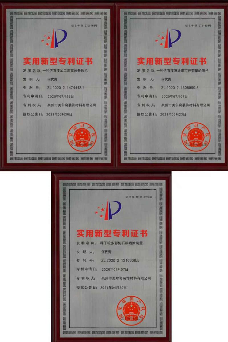 與福州大學(xué)、中科院材料所共建仿石漆聯(lián)合實(shí)驗(yàn)室,仿石漆噴涂用可控變量的噴槍、仿石漆加工用高效分散機(jī)等前沿領(lǐng)域,累計(jì)申請(qǐng)專利13項(xiàng),其中發(fā)明專利占比達(dá)65%。