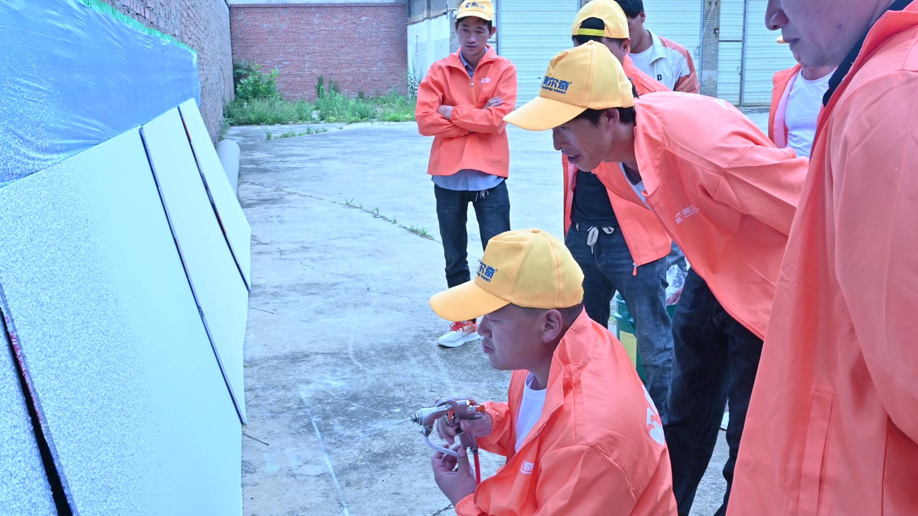 美爾奇通過618新品推廣交流會,聚焦于夏季施工專用配方或性價比升級方案,推廣創(chuàng)新工藝,針對高溫、潮濕環(huán)境提供調(diào)色、噴涂及養(yǎng)護(hù)指導(dǎo),重點(diǎn)展示了仿石漆精準(zhǔn)施工技術(shù)。